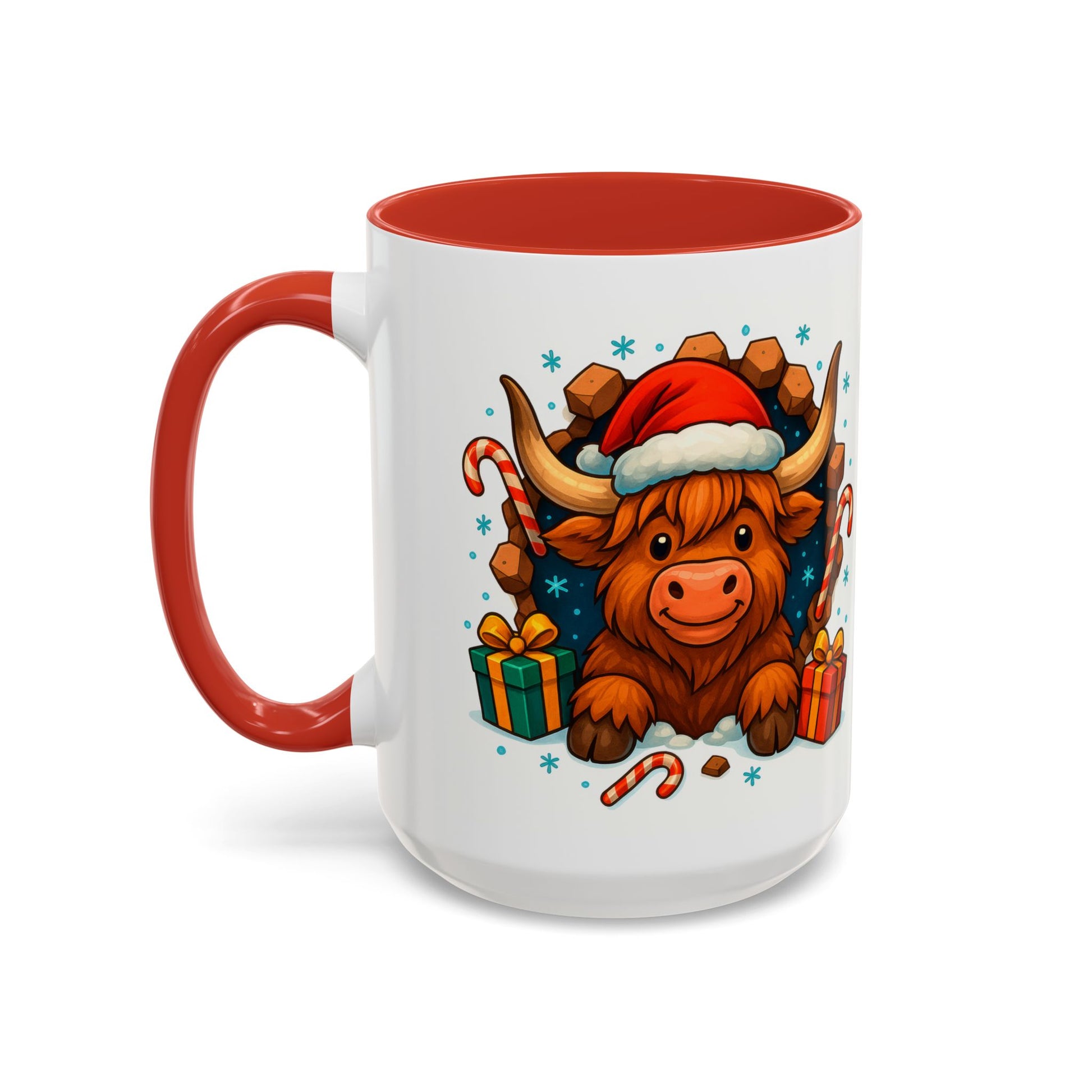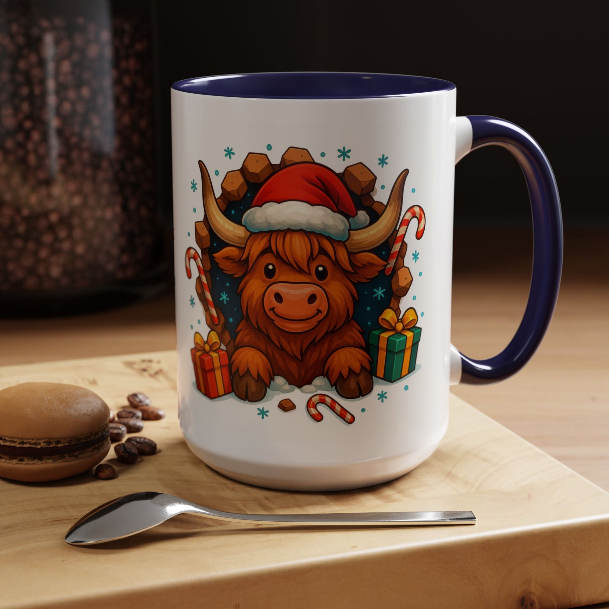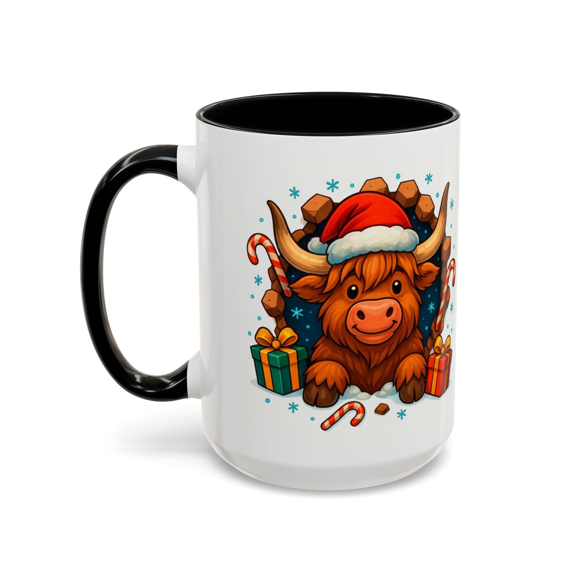Christmas Highland Cow Mug – Cute 15oz Holiday Coffee Cup with Santa Hat & Gifts