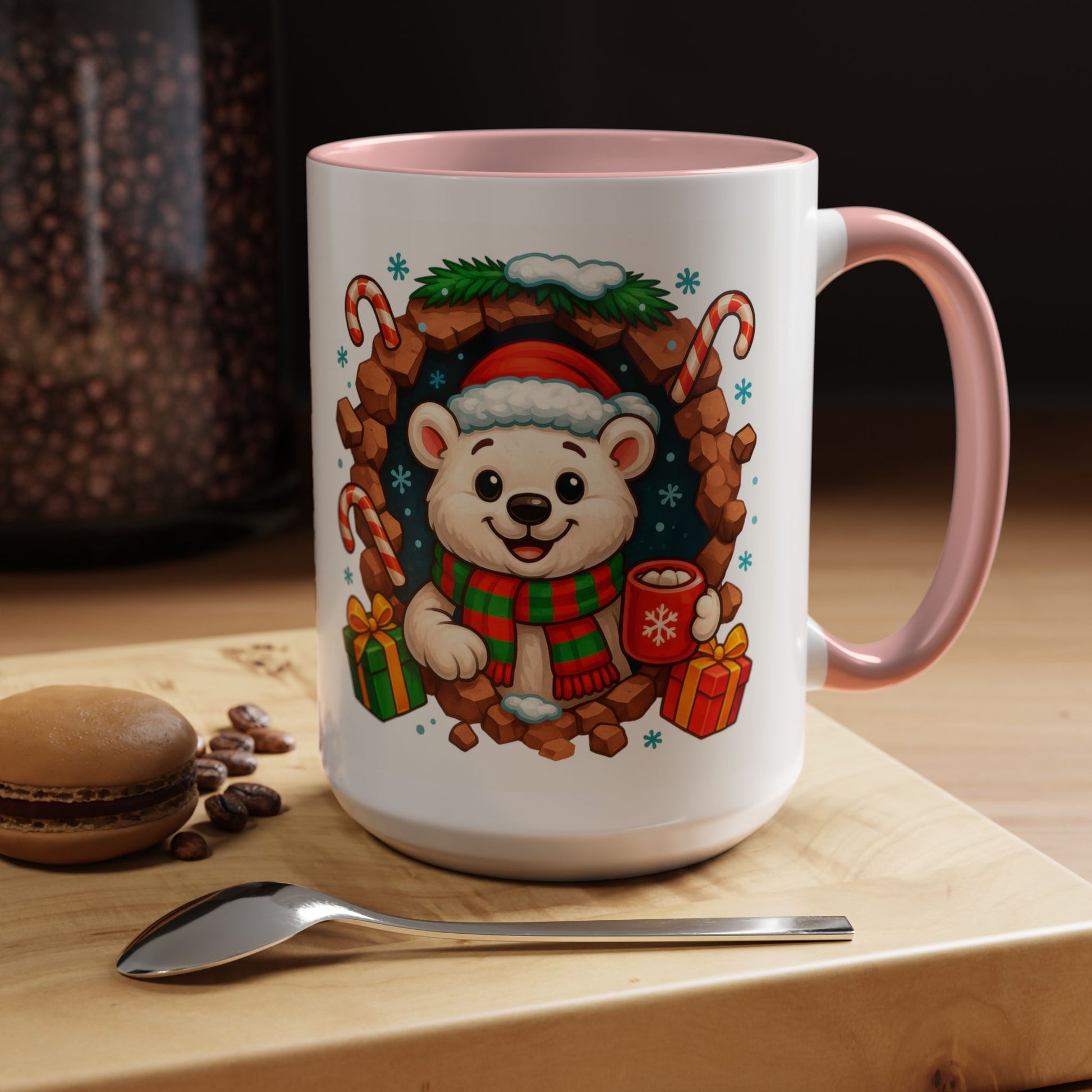 Christmas Polar Bear Mug – Cute Holiday 15oz Coffee Cup with Gifts & Candy Canes
