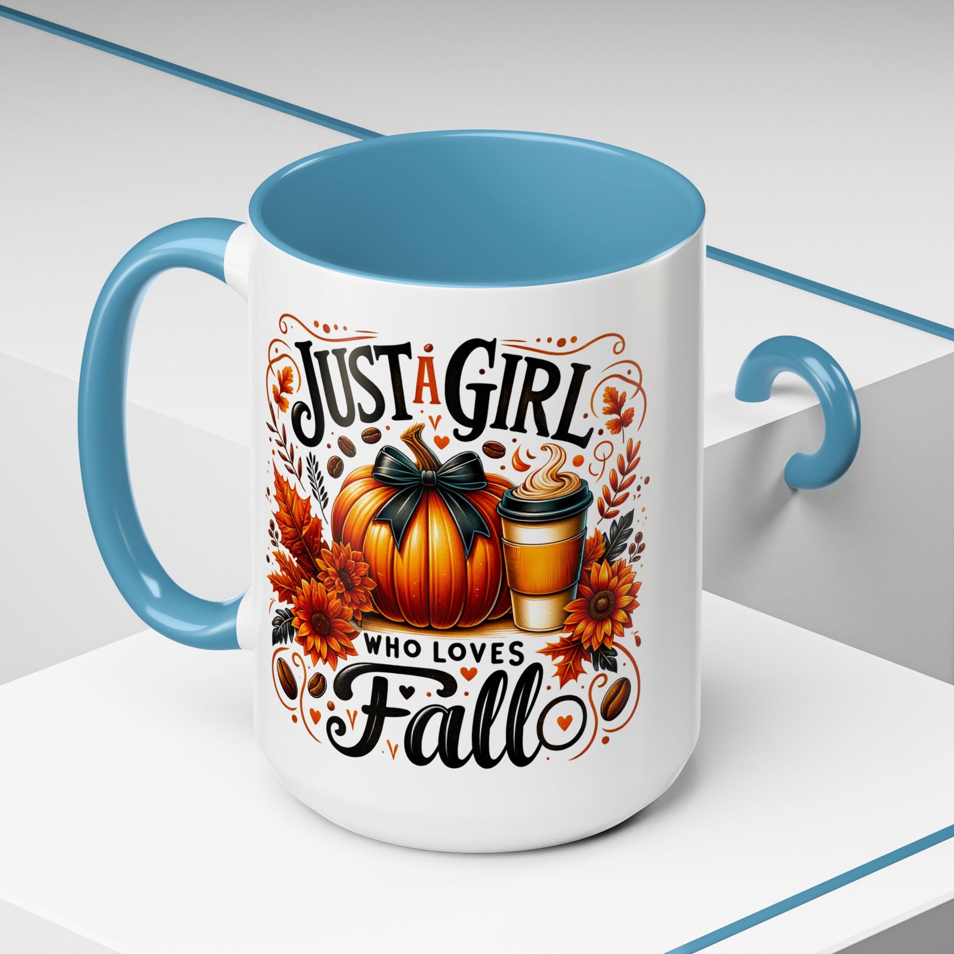 Just a Girl Who Loves Fall Mug – Cute Autumn Coffee Cup with Pumpkin & Flowers